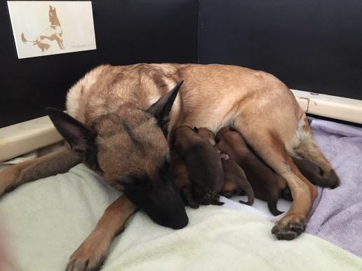 Wichtig ist der Hündin und den Welpen geht es blendend. Sie ist eine sehr liebevolle Mutti und kümmert und säugt sie rund um die Uhr.
